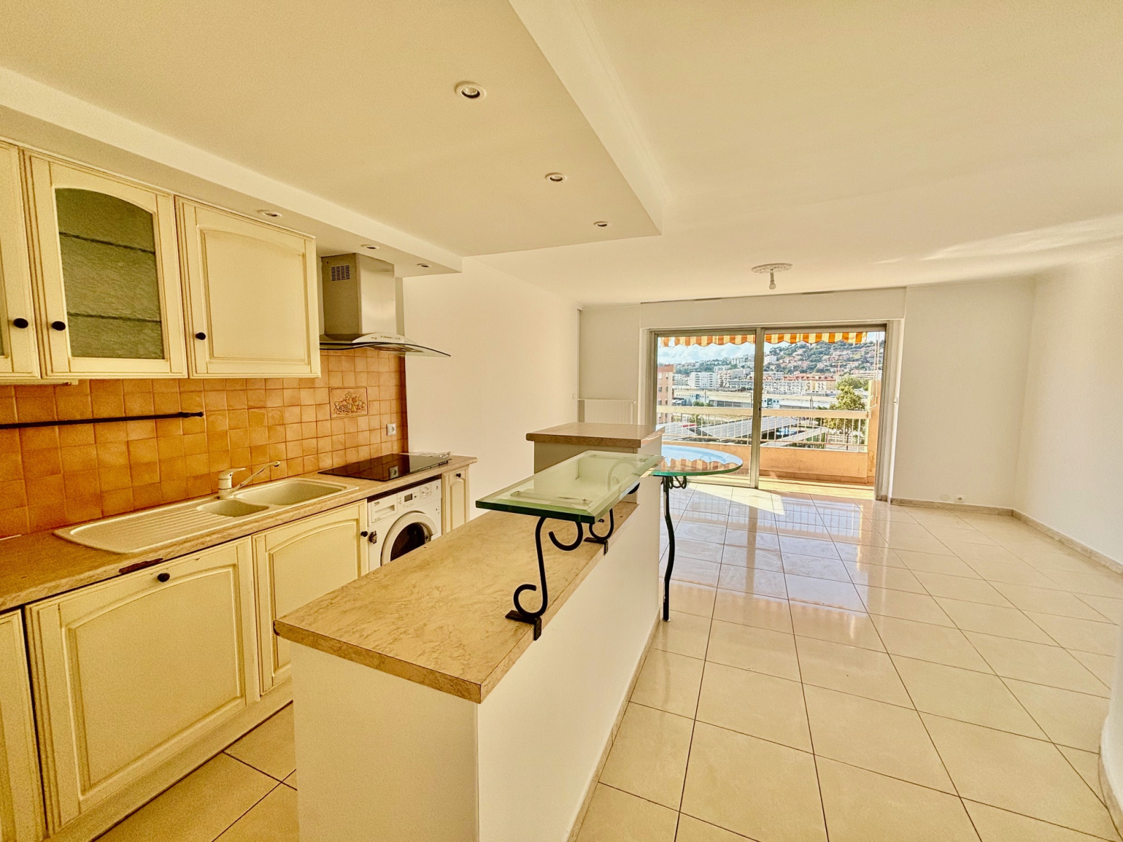 F3 64m2 traversant . Entrée, avec rengements, deux chambres, salle de bain, Wc séparé, cuisine americaire aménagée sur sejour avec beau balcons expoosé Sud Ouest tres lumineux .